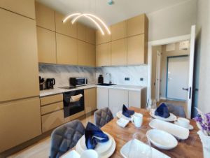• Вся необходимая техника: посудомоечная машина, стиральная машина, встроенный холодильник, микроволновая печь, электрический чайник, духовка, плита, кондиционер.