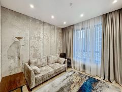 ID 47294. Новая 2-комнатная квартира в жилом комплексе "Остров". Современный ремонт выполнен с использованием качественных материалов. Квартира укомплектована всей необходимой бытовой техникой, установлены кондиционеры, стиральная и сушильная машины. Квартира частично меблирована. Общая площадь 62 кв. м. Планировка: небольшая кухня-гостиная, спальня с гардеробной, свободная комната (может быть второй спальней), две ванные комнаты с ванной и душем. Из окон открывается панорамный вид на город. Во дворе ландшафтный дизайн, зона для прогулок и отдыха. Возможна аренда машино-места в подземном гараже. Можно с детьми.