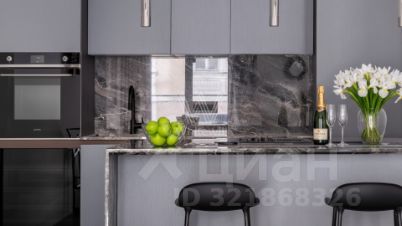 Главное о квартире: второй этаж, 76 метров, кухня-гостиная, спальня с гардеробной, два санузла. Система "умный дом", техника Smeg. Квартира подходит для одного или для пары.