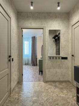 Ремонт: полностью выполнен капитальный ремонт, с заменой или улучшением всех коммуникаций. Много розеток в нужных местах, точечное освещение, споты. Полы кварцивинил в комнате, на кухне крупноформатный керамогранит, светлые обои.