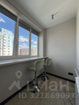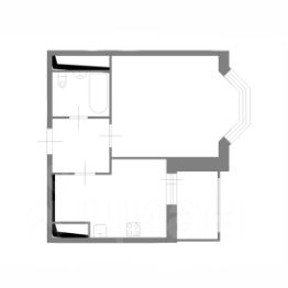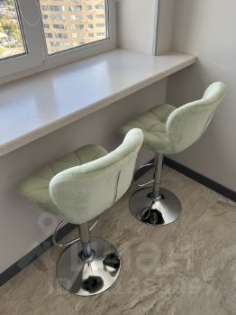 Планировка: изолированная комната с эркером, кухня с лоджией (сделано рабочее место, со столешницей из мрамора и барными стульями). Санузел совмещенный.