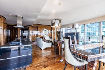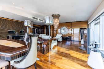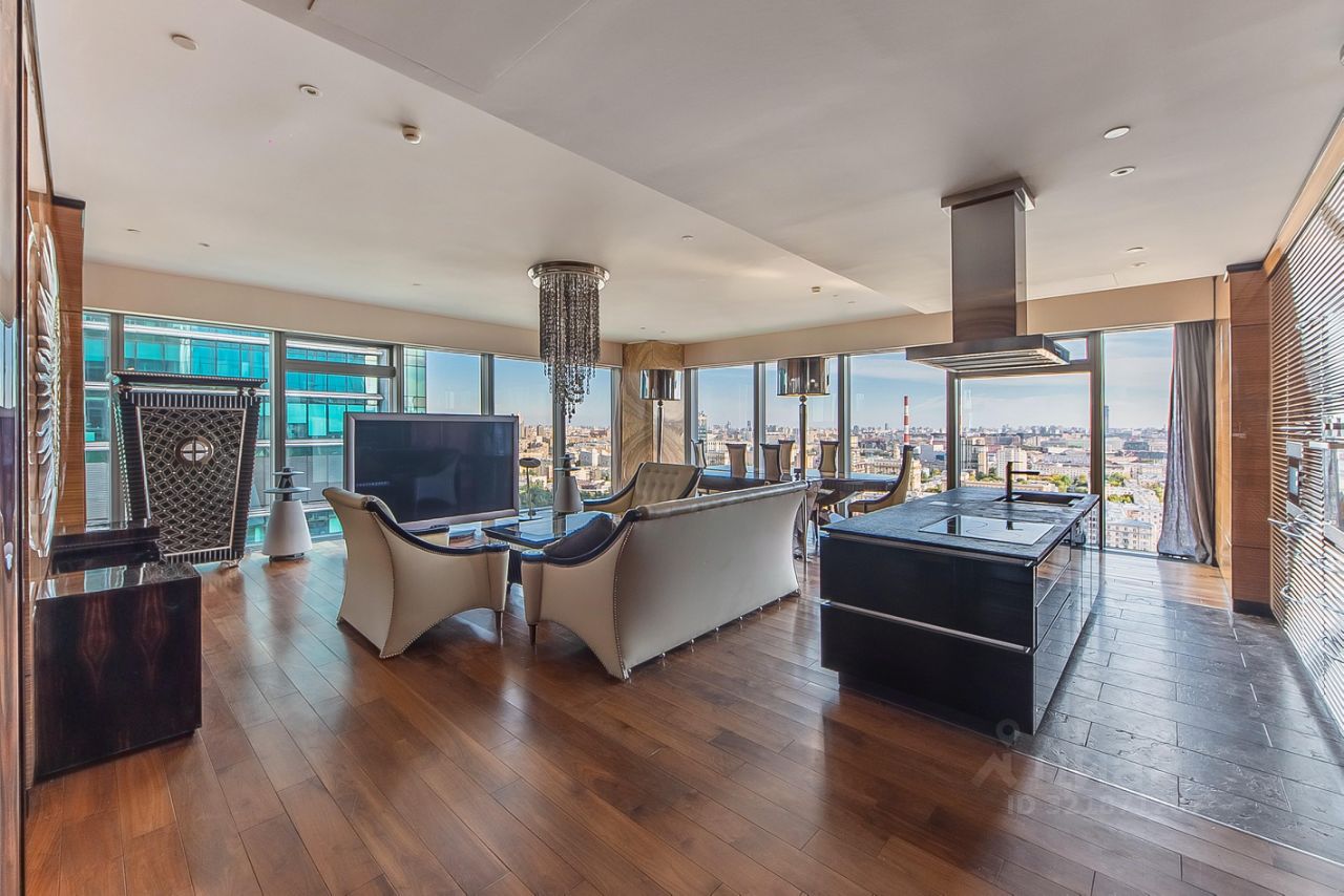 Предлагаем вашему вниманию королевские трехкомнатные угловые апартаменты с шикарным панорамным видом на город, набережную и комплекс Москва сити. Находится на 23 этаже башни Москва. Одна из самых дорогих по оснащению и мебели квартир в Москва Сити.