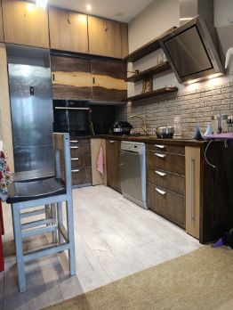 Квартира выполнена в стиле "евроремонт" и полностью готова к проживанию. Просторная кухня площадью 24 кв. м оснащена всей необходимой техникой: холодильником, посудомоечной машиной и кондиционером. В комнате есть удобная мебель из натурального дерева. Санузел совмещенный, в ванной комнате установлена ванна. Окна квартиры выходят во двор, поэтому вы сможете наслаждаться тишиной и спокойствием.