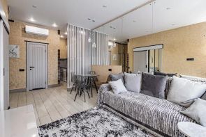Квартира оформлена в дизайнерском стиле и полностью меблирована. Просторная кухня в 18 кв. м оснащена всей необходимой техникой: современный холодильник, посудомоечная машина и стиральная машина. В комнате также имеется телевизор и кондиционер, чтобы обеспечить комфортное проживание. В санузле установлена душевая кабина.