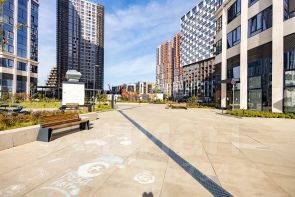 Жилой комплекс находится в районе с развитой инфраструктурой. В шаговой доступности расположено метро "Аминьевская", до которого можно дойти всего за 8 минут. Рядом с домом есть магазины, где можно купить все необходимое для повседневной жизни.