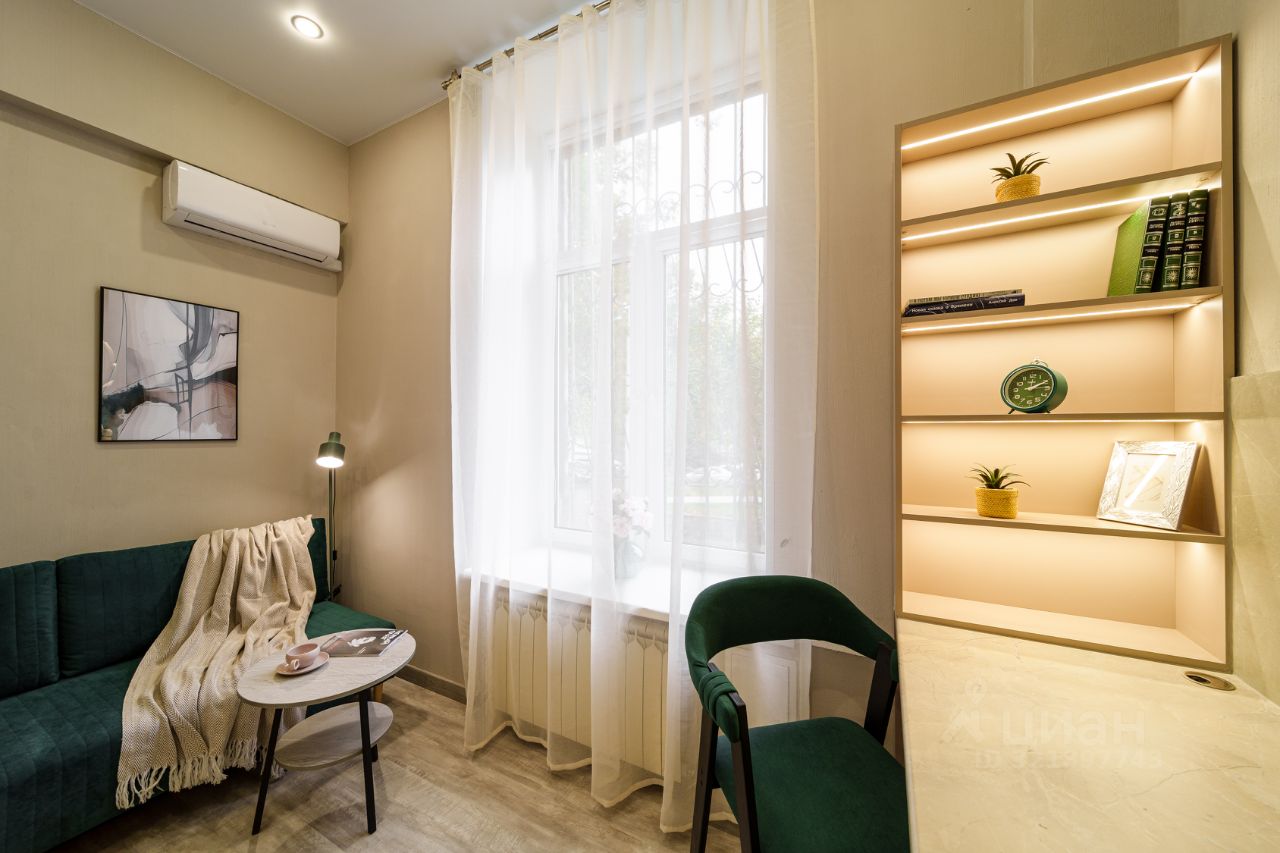 Студия теплая, светлая, расположена на высоком 1 этаже 5-этажного кирпичного здания.