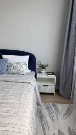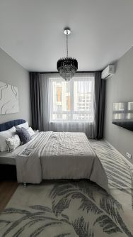 В квартире выполнен современный ремонт. Планировка продумана до мелочей: просторная кухня-гостиная с выходом на лоджию и уютная спальня со своим санузлом. В квартире есть вся необходимая новая мебель, двухспальная кровать с ортопедическим матрасом Moon, вместительные шкафы для удобного хранения. Для вашего удобства установлена современная техника: кондиционер, встраиваемый холодильник, посудомоечная машина, телевизор и стиральная машина. Санузел совмещённый, с ванной, что добавляет удобства в повседневной жизни.