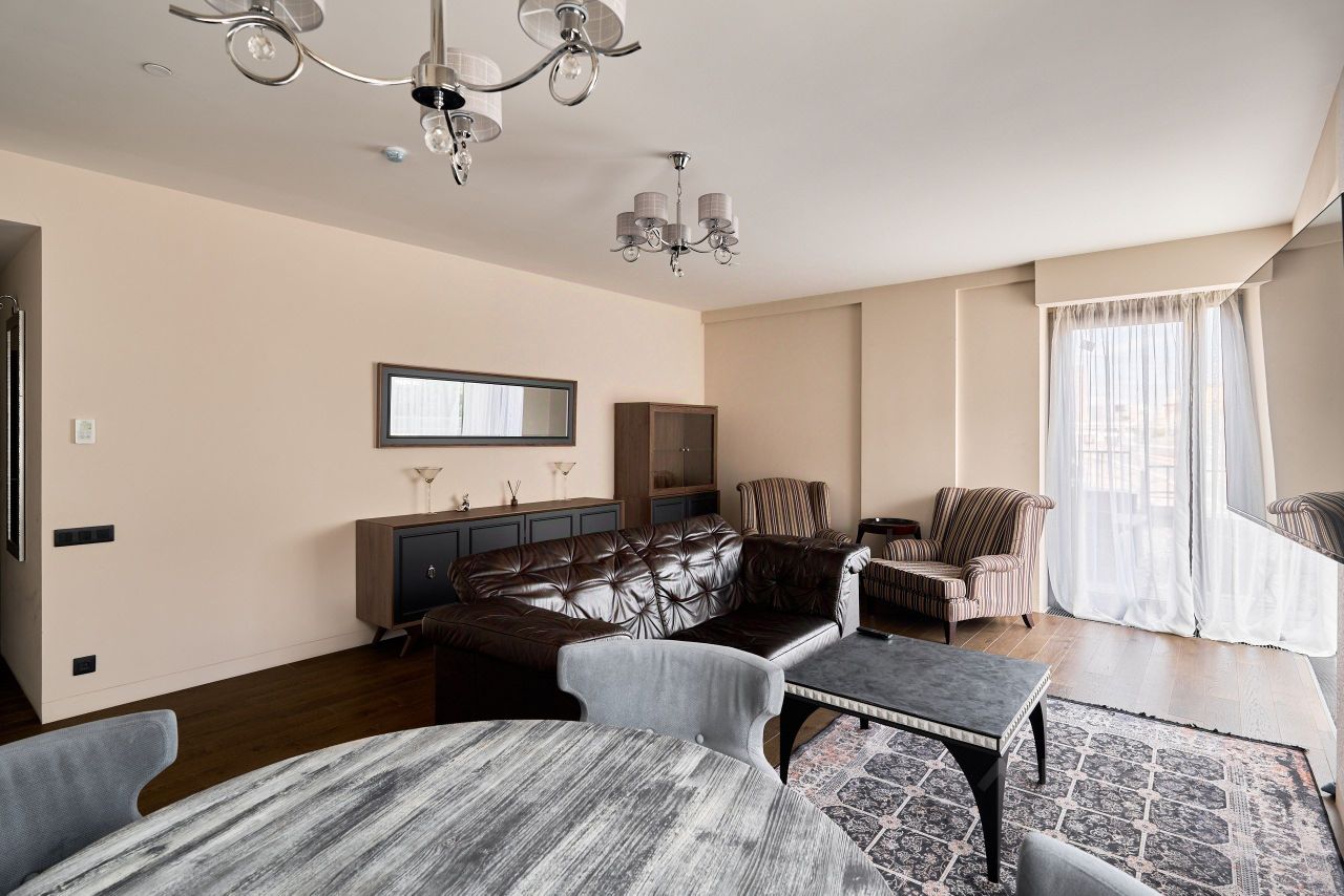 Апартаменты со стильным ремонтом состоят из двух отдельных спален, двух санузлов и кухни, совмещенной с гостиной, а также просторная прихожая.