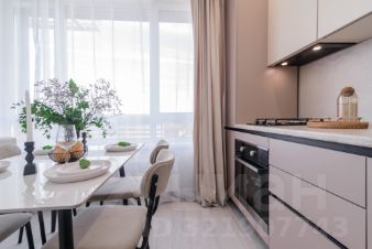 Полноценная спальня, гостиная совмещена с кухней, есть гардеробная с системой хранения. Совмещённый санузел с ванной.