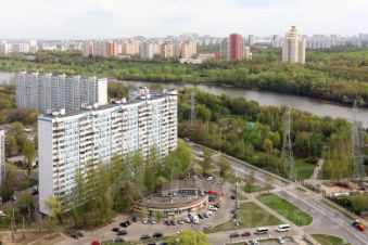 Панорамный вид на Москва-реку и парк.