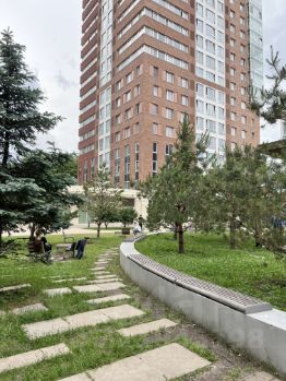 Высокий 19 этаж, закрытый двор без машин с прогулочной зоной и местами для отдыха.