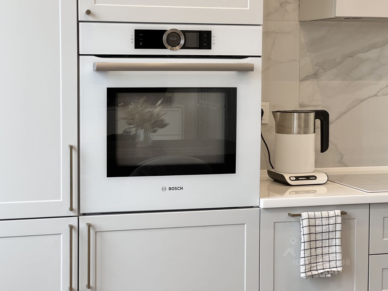кондиционер, тёплый пол, зонирование светом, множество мест для хранения, посудомоечная и стиральная машины с сушкой, микроволновая и духовая печь.