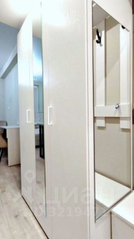 В студии двуспальная кровать с ортопедическим матрасом, туалетный столик с зеркалом, кресла, барный стул, wi-fi, смарт TV, кухонная мебель с техникой и посудой, вместительный шкаф с полками и продольной штангой, вешалка, обувница, антресоль для хранения крупногабаритных вещей.