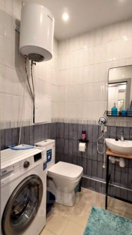 Ванная оборудована душевой кабиной, стиральной машинкой, водонагревателем, феном.