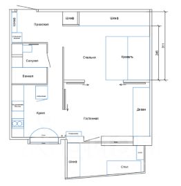 - Эргономичное зонирование: спальня и гостиная разделены раздвижными перегородками