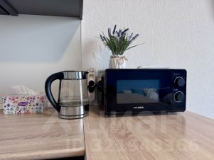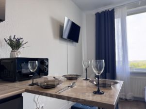 Студия полностью укомплектована мебелью, техникой, кухней, имеется три спальных места, двухспальный диван и кресло-кровать. Есть все необходимое доя комфортного проживания, кухня оборудованна: варочная панелью, свч-печь, холодильник, электрический чайник, кондиционер, посуда и столовые приборы для 4-х человек, чай, кофе, соль, сахар, приправы. В ванная комната оснащена стиральной машинкой, средствами гигиены, имеются комплект полотенц для комфортного сна постельное белье, подушки, одеяла для 3-х чел. Для комфортного времени провождения установлен смарт-тв, вид из окна на лес.