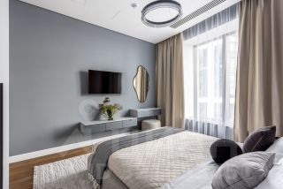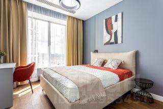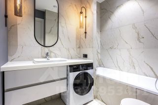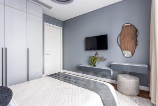 В квартире сделан дизайнерский ремонт с использованием качественных материалов. Все комнаты меблированы, в каждой детали — стиль и комфорт. Оснащена всей необходимой техникой: кондиционер, холодильник, посудомоечная и стиральная машины, телевизор. Продуманная планировка включает два отдельных санузла и ванну. Окна выходят на улицу, обеспечивая много естественного света.