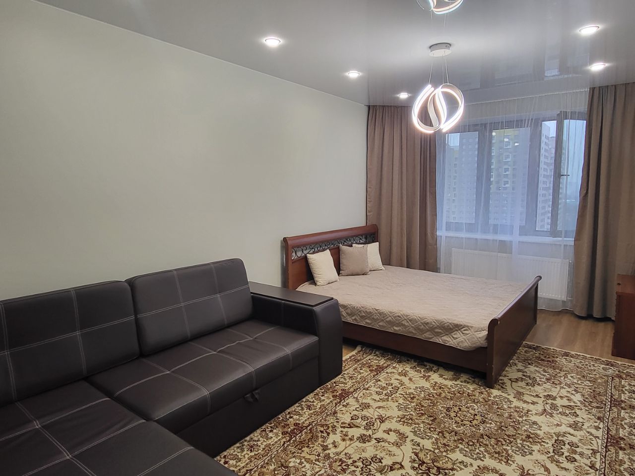Сдается светлая и уютная однокомнатная квартира со свежим, качественным ремонтом. Ранее в квартире никто не жил, сдаётся впервые! В просторной комнате имеется двуспальная кровать и большой диван. На кухне установлен новый мебельный гарнитур со всей необходимой бытовой техникой - варочной панелью, духовым шкафом, вытяжкой, микроволновкой, посудомоечной машиной и холодильником. Имеется вместительная оборудованная гардеробная и просторная застеклённая лоджия. Установлено два кондиционера. Стиральную машину хозяин установит при заселении арендатора.