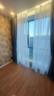 Во всех комнатах панорамное остекление, поэтому в квартире светло и уютно. Также есть разные варианты освещения (люстры, торшер, бра , потолочное освещение, подстветка карнизов). В квартире продумано все до мелочей: много розеток, раздвижные двери между гостиной и прихожей, в ванной комнате полы с подогревом, по всей квартире на полу лежит кварц-винил (теплые и бесшумные полы)