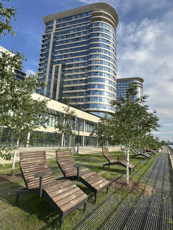 набережная рядом, магазины и кафе под боком, зелёный двор без машин и быстрый выезд в город.