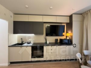 Встроенная мебель и кухня изготовлены на заказ по индивидуальному дизайн-проекту.
