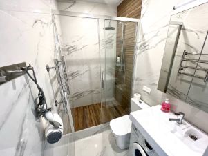 Бесконтактное заселение. В квартире предусмотрено всё необходимое для комфортного проживания (Wi-Fi, гардероб, посудомойка, холодильник, кондиционер, стиральная машина, банные и постельные принадлежности, фен, по всей квартире подогреваемый тёплый пол, гладильная доска и утюг, сушка для одежды). Кровать размера Кing sizе 180*200
