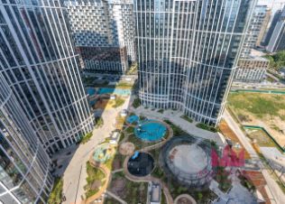 ЖК: Территория комплекса представляет из себя 3 корпуса архитектурой в форме лепестков. Закрытая территория, подземный паркинг, консьерж-сервис. Во дворе пруд и летний кинотеатр, своя школа, а также охрана, видеонаблюдение, автомойка, зарядки для электромобилей и система пожаротушения.