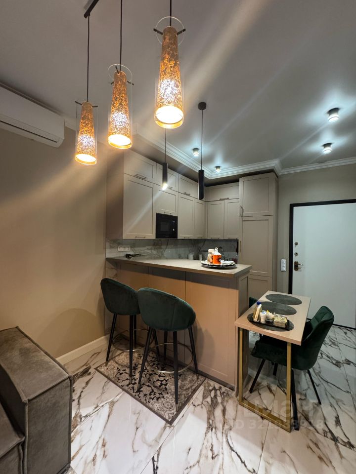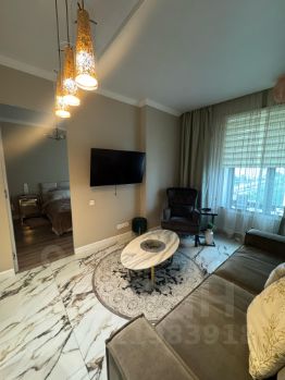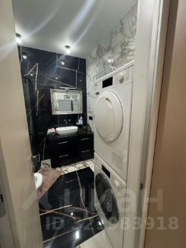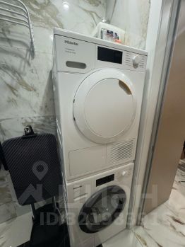 В квартире есть всё необходимое для комфортного проживания: кондиционер, холодильник, посудомоечная машина, телевизор и стиральная машина, сушильная машина. Вся бытовая техника Miele. Обстановка стильная и современная, мебель установлена на кухне и в комнате. Санузел совмещённый, оборудован душевой кабиной.