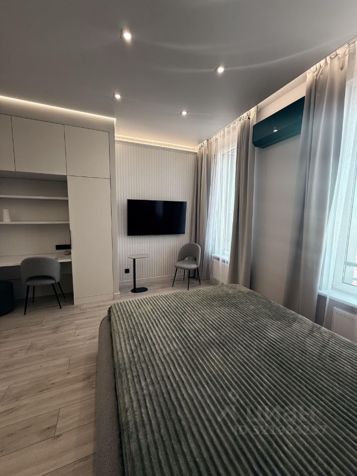 В квартире есть все необходимое для комфортного проживания. В комнате и на кухне расположена современная мебель. Для вашего удобства установлены кондиционер, холодильник, телевизор, стиральная и посудомоечная машины. В ванной комнате есть ванна, что добавляет комфорта после долгого дня. Квартира оснащена интернетом, поэтому можно всегда оставаться на связи.