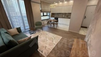 В квартире сделан современный евроремонт. Просторная кухня площадью 20 кв. м оборудована всей необходимой техникой: кондиционер, холодильник, посудомоечная и стиральная машины. В комнатах и на кухне установлена мебель, что позволяет сразу же заселиться и чувствовать себя как дома. Санузел совмещённый, оснащён душевой кабиной. Из окон открывается вид как на улицу, так и во двор, а также имеется балкон для отдыха на свежем воздухе.