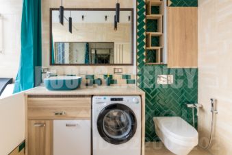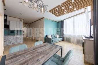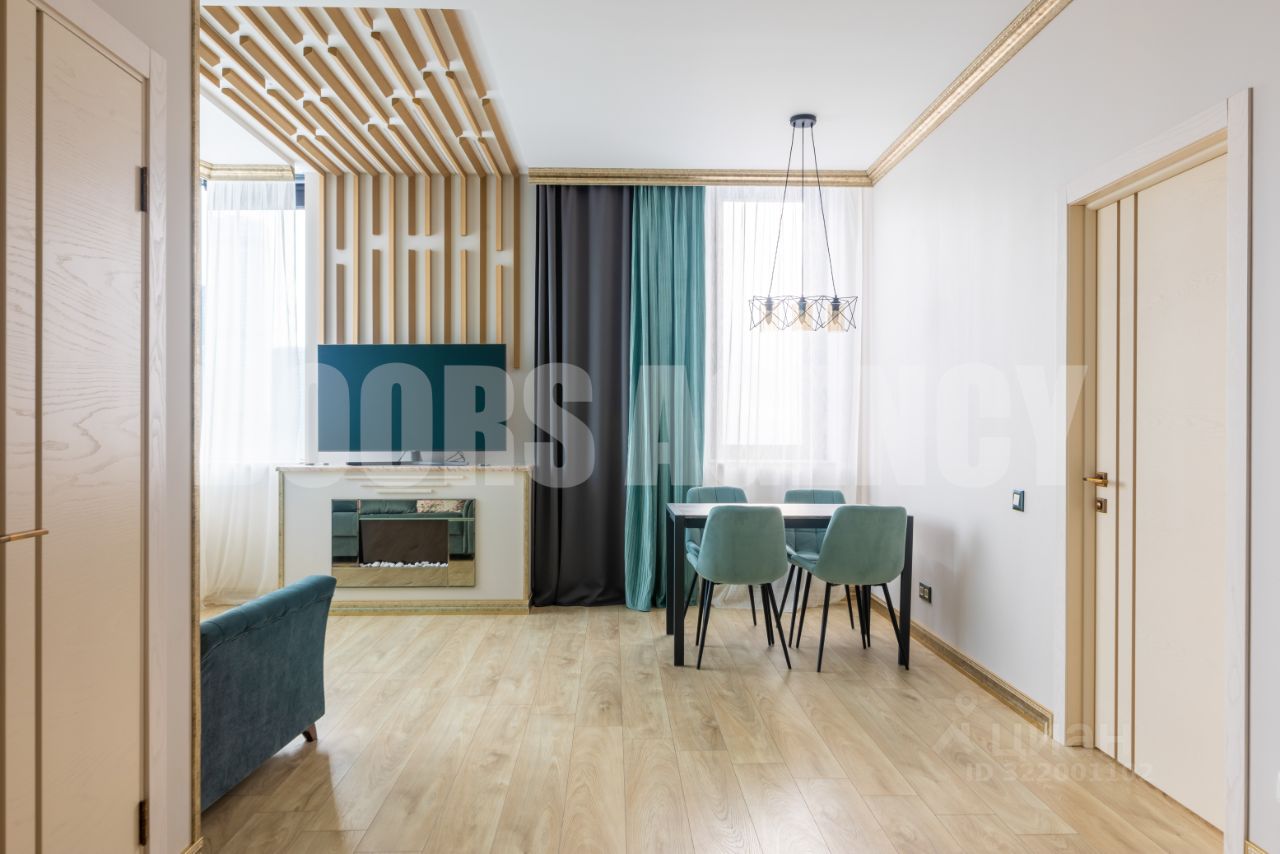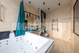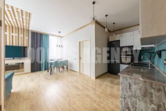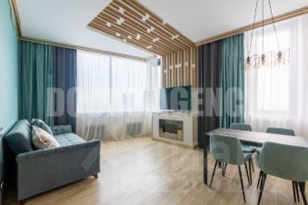 Планировка: спальня 15 м., гостиная 25 м., кухня 7 м., санузел совмещенный с ванной, вместительная гардеробная. В квартире имеется вся необходимая техника, в том числе посудомоечная машина, микроволновая печь, духовой шкаф, электрокамин, 2 современных телевизора Smart TV (диагональ 55 и 50). Приточно-вытяжная система вентиляции, теплые полы в кухне и санузле. Большая ванная комната, ванна с подсветкой и гидромассажем. Высокие откидывающиеся окна (важное преимущество для данного ЖК).