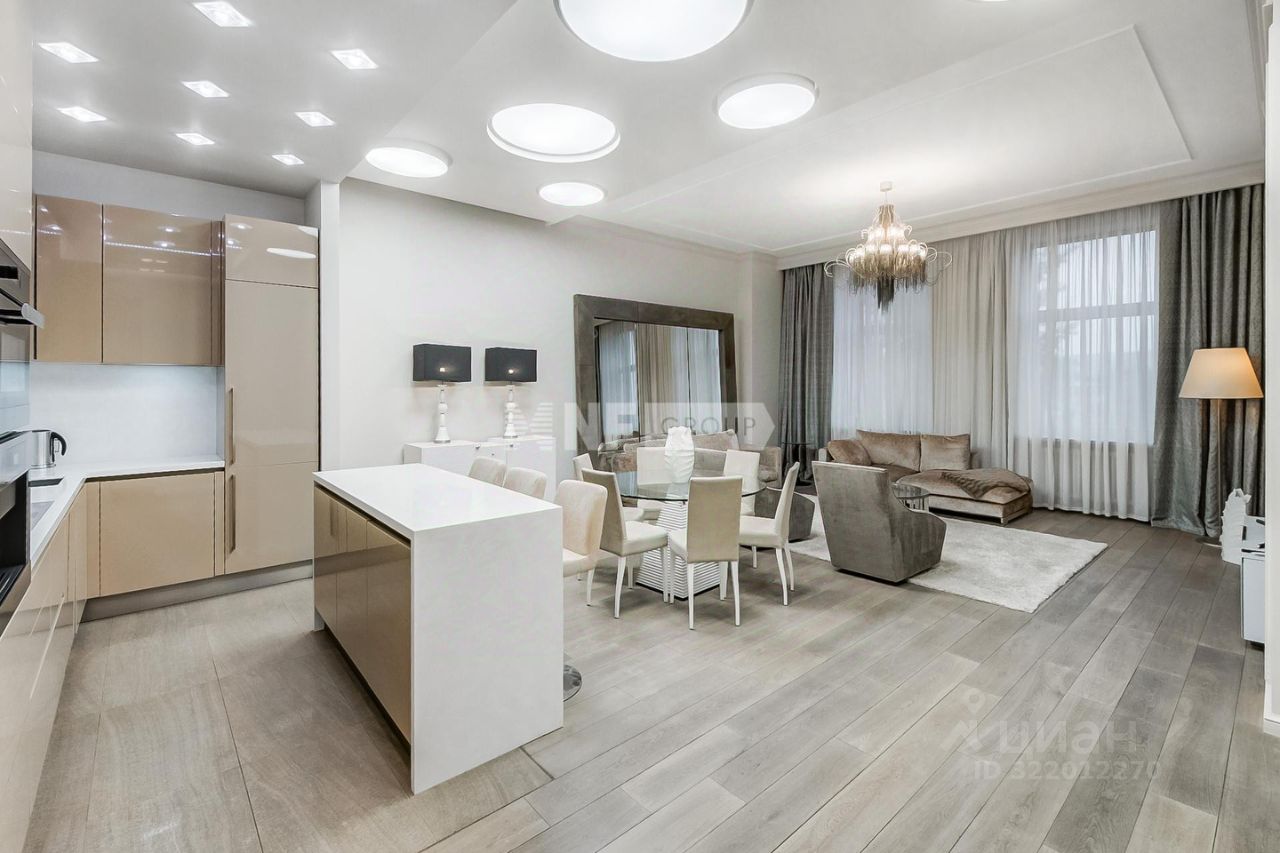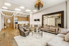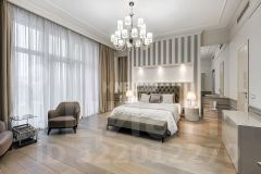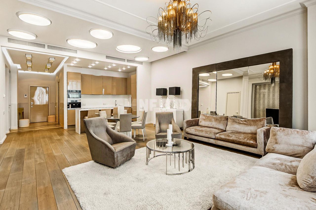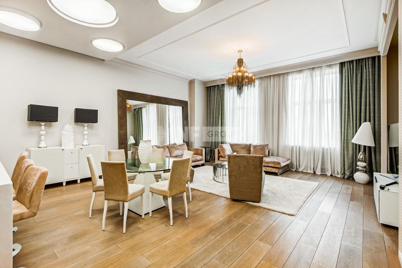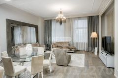 Четырехкомнатная квартира расположена на четвертом этаже жилого комплекса "Имперский дом" в районе Якиманки.