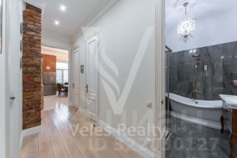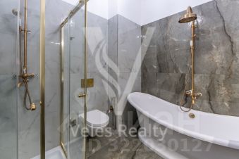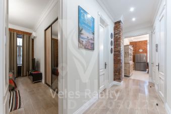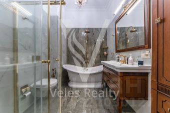 ПЛАНИРОВКА: гостиная, кабинет, кухня-столовая, 2 спальни, в каждой из которых встроенный шкаф, 2 с/у, постирочная (стиральная и сушильная машины). Квартира полностью меблирована и укомплектована бытовой техникой от мировых производителей. Кухня итальянской фабрики Stosa привезена из Италии (по индивидуальному заказу). На полу: доска из массива Дуба, керамогранит. Подоконники - мрамор и гранит, столешница на кухне гранит. Двери под заказ (2,80м). Батареи немецкие чугунные в ретро стиле. Кондиционеры в каждой комнате, бойлер, теплые полы, Потолки 3,60м.