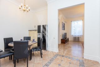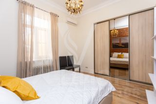 ПЛАНИРОВКА: Гостиная (28м2), 2 спальни (25-18)м2, одна из них с большой гардеробной (6м2), кухня 16м2, 2 совмещенных санузла, один из них с ванной, другой с душевой кабиной. Квартира полностью меблирована и укомплектована необходимой бытовой техникой от ведущих мировых производителей. Кухня итальянская, сделанная по индивидуальному заказу с гранитной столешницей, мраморные подоконники, полы - дубовая доска-массив, двери - дуб-массив Н-2,80. 3 кондиционера, бойлер, встроенные шкафы. Радиаторы немецкие в ретро стиле, чугунные. Потолки 3,60м. Интернет, кабельное телевидение. Лифт. Закрытый двор. Охраняемая платная парковка (подземная/наземная) по соседству.