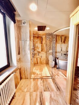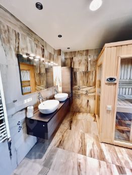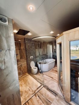 Ванная комната оснащена душевой зоной, сауной, полноразмерной ванной. Вся сантехника Villeroy and Boch.