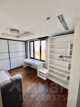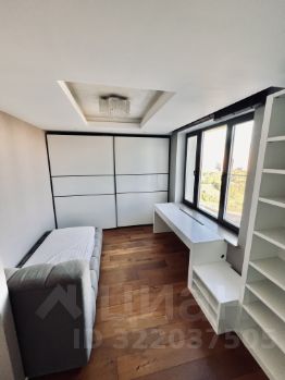 Вторая отдельная комната оборудована вместительным встроенным шкафом, рабочим столом с стеллажами и кроватью.