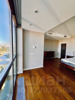 Мастер спальня с панорамным окном, собственной гардеробной и ванной комнатой.