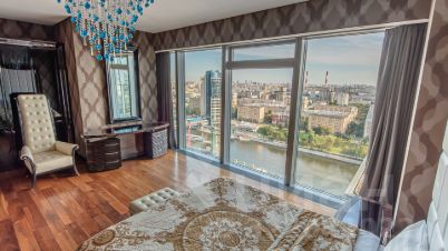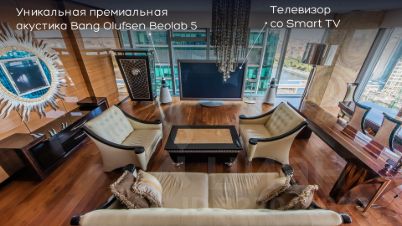 Дорогая мебель, аудиосистема Bang & Olufsen BeoLab 5, две полноценные ванные комнаты с отдельными ванными комнатами, бьюти-зона, панорамные виды на центр Москвы и башни.