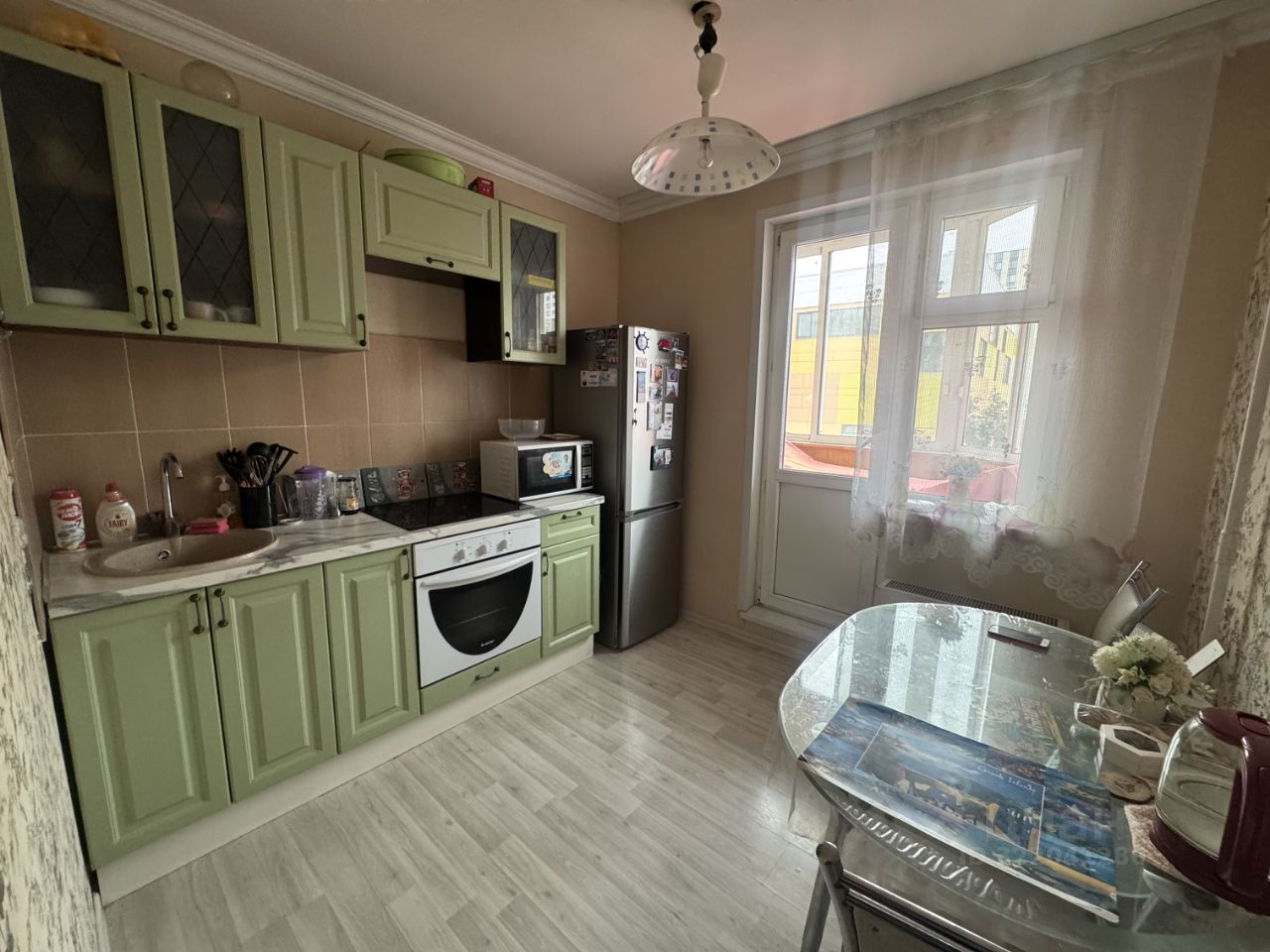 В шаговой доступности от дома находятся школы, детские сады и магазины, что делает район особенно удобным для семейного проживания. В 15 минутах езды на автомобиле расположена станция метро "Ольховая", что облегчает передвижение по городу.