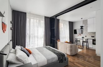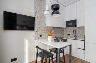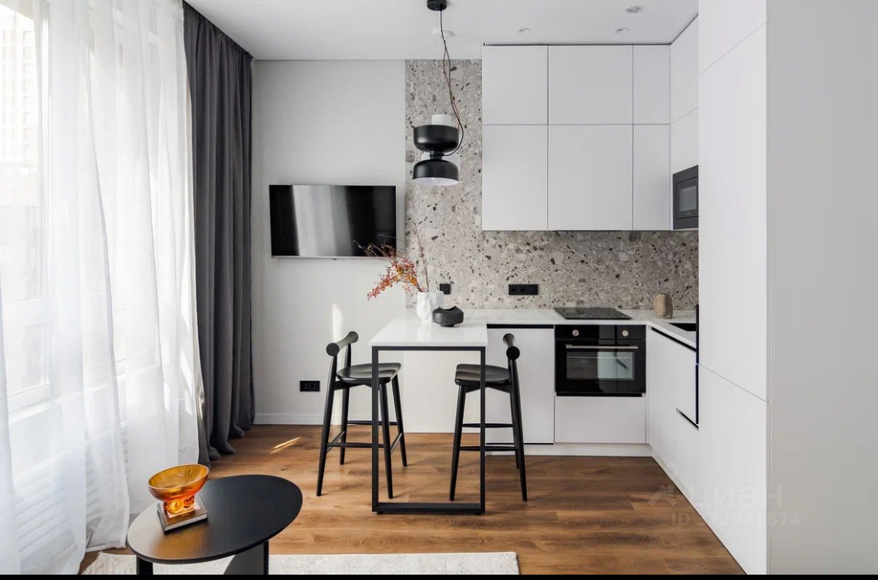 Квартира с дизайнерским ремонтом в сканди стиле с яркими акцентами, и полностью укомплектованной всем необходимым. На современной кухне площадью 11.1 кв. м удобно готовить: здесь есть всё необходимое — посудомоечная машина, холодильник и другие бытовые приборы. В комнате установлен кондиционер для комфортного проживания в любое время года. Санузел совмещённый, оборудован душевой кабиной. Все окна выходят во двор, поэтому в квартире тихо и спокойно.