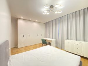 В Объекте произведен дизайнерский ремонт из дорогостоящих строительно-отделочных материалов. Вся необходимая бытовая техника и мебель в наличии (телевизор на фотографиях уже установлен на кронштейн, фотографии будут позже). Для дополнительного комфорта установлены теплые полы, кондиционер, водонагреватель и датчики от протечек воды.