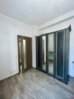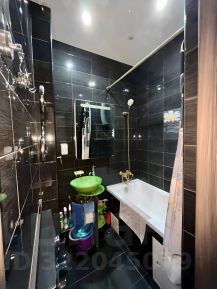 Современная гарнитурная мебель: двуспальная кровать, шкаф, туалетный столик, встроенный шкаф-купе зеркальный. СУ в плитке до потолка, импортная сантехника, мойдодыр.