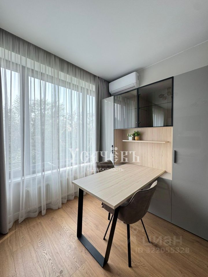 Студия полностью меблирована и готова к заселению, окна выходят в тихий зеленый двор.