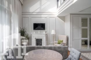 | Дизайнерский ремонт в светлых тонах, камин в гостиной