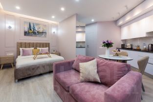 Красивый апартамент в нежно-лиловых оттенках! Очень уютно и комфортно! Восторг и свежесть в номере Вас порадует. Осторожно: не захочется выезжать