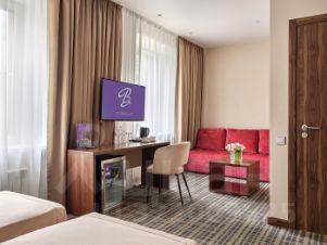 Однокомнатный, стильный, эргономичный номер с окнами выходящими на парк, зрительно разделен на спальню и гостиную. Номер расположен в отдельно стоящем корпусе "Лесной".