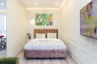 Невероятно красивый апартамент в нежно-розовых оттенках! Очень уютно и комфортно! Восторг и свежесть в номере Вас порадует. Бесплатная наземная парковка на территории дома; Стандартное время заезда с 15:00, выезда до 12:00. По согласованию ранний заезд и поздний выезд, возможна доплата. ВАШИ ПРЕИМУЩЕСТВА: В студии сделан современный дизайнерский ремонт со следующими удобствами и не только: 1 Премиальный матрас от немецкого производителя; 2 Постельное белье и комплекты полотенец; 3 Посуда от Giepfel, 4 Кофе-машина с приветственными капсулами серии Nespresso; 5 Просторный шкаф ; 6 Раскладной диван, отлично подойдет для детей или подростков для семейных путешествий, размер спального доп.места до 1 гостя; 7Большой плазменный Смарт-ТВ; 8Бесплатная подписка к Wink; 9Просторная и красивая ванная комната, в случае сезонного отключения горячей воды у нас установлен бойлер Для командировочных делаем отчетные документы. Оплата возможна по безналу (по счету) или QR-кодом. В наших апартаментах не курят, установлены пожарные датчики; Проживание с животными не предусмотрено ДИСТАНЦИОННОЕ КРУГЛОСУТОЧНОЕ ЗАСЕЛЕНИЕ по электронным замкам в любое время, в доме работает охрана дома. Можно заезжать даже ночью. Код доступа от двери апартамента предоставляется только при регистрации с действующим паспортом РФ (для граждан) или загран (для иностранных гостей)+миграционной карточкой. Наша служба отдела бронирования и поддержки работает ежедневно с 10:00-21:00. Если Вы к примеру бронируете после 21:00 и сразу хотите заехать, то , пожалуйста, предварительно свяжитесь с нами и удостоверьтесь, что мы на связи. Иногда в такое время мы можем пойти спать и уже не увидеть Ваши сообщения или звонки УСЛОВИЯ ПРОЖИВАНИЯ : Залог 5000 РУБЛЕЙ и доплата за проживание вносится за день до заезда. Срок возврата депозита в течение дня после завершения уборки в номере . Стоимость может быть разной в зависимости от нескольких критериев: кол-ва проживающих гостей, праздничных дат или других дат с высокой сезонностью. Цены всегда можно проверить онлайн в разделе Забронировать. Размещение до 3х гостей. ДОП.МЕСТО СВЫШЕ ДВУХ ГОСТЕЙ=1000 р/сут НАШИ ГАРАНТИИ: -Предоставление квитанции/чеков об оплате и отчетных документов по запросу ПРАВИЛА ПРОЖИВАНИЯ : Запрещено проводить шумные мероприятия и курение в квартире даже электронными сигаретами Проживание с животными не предусмотрено Коммерческие фото и видео съемки по предварительному согласованию Разрешено проживание с детьми любого возраста под присмотром родителей. Просим одних маленьких детей не оставлять дома без присмотра. Стоимость одноместного и двухместного размещения для пар одинаковая при условии, что гости размещаются на основном спальном месте — кровати. Дети до 3-х лет могут проживать бесплатно при условии размещения на кровати с родителями. В любой ситуации умейте радовать и баловать себя чем-то хорошим, достойным Вас, а мы позаботимся о Вашем максимальном комфорте и уюте. Ждём Вас в гости!