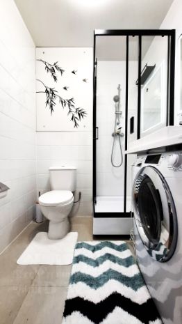 - Санузел с душевой кабиной и современной сантехникой
