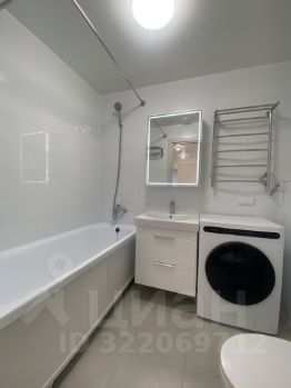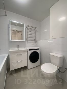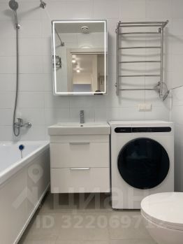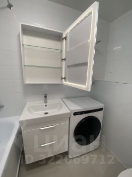 Два сан узла, в одном из которых ванна, унитаз, раковина с тумбой и навесным шкафчиком с лед-подсветкой, а также стиральная машина с функцией сушки белья, во втором: унитаз, небольшая раковина со смесителем и навесной шкафчик.