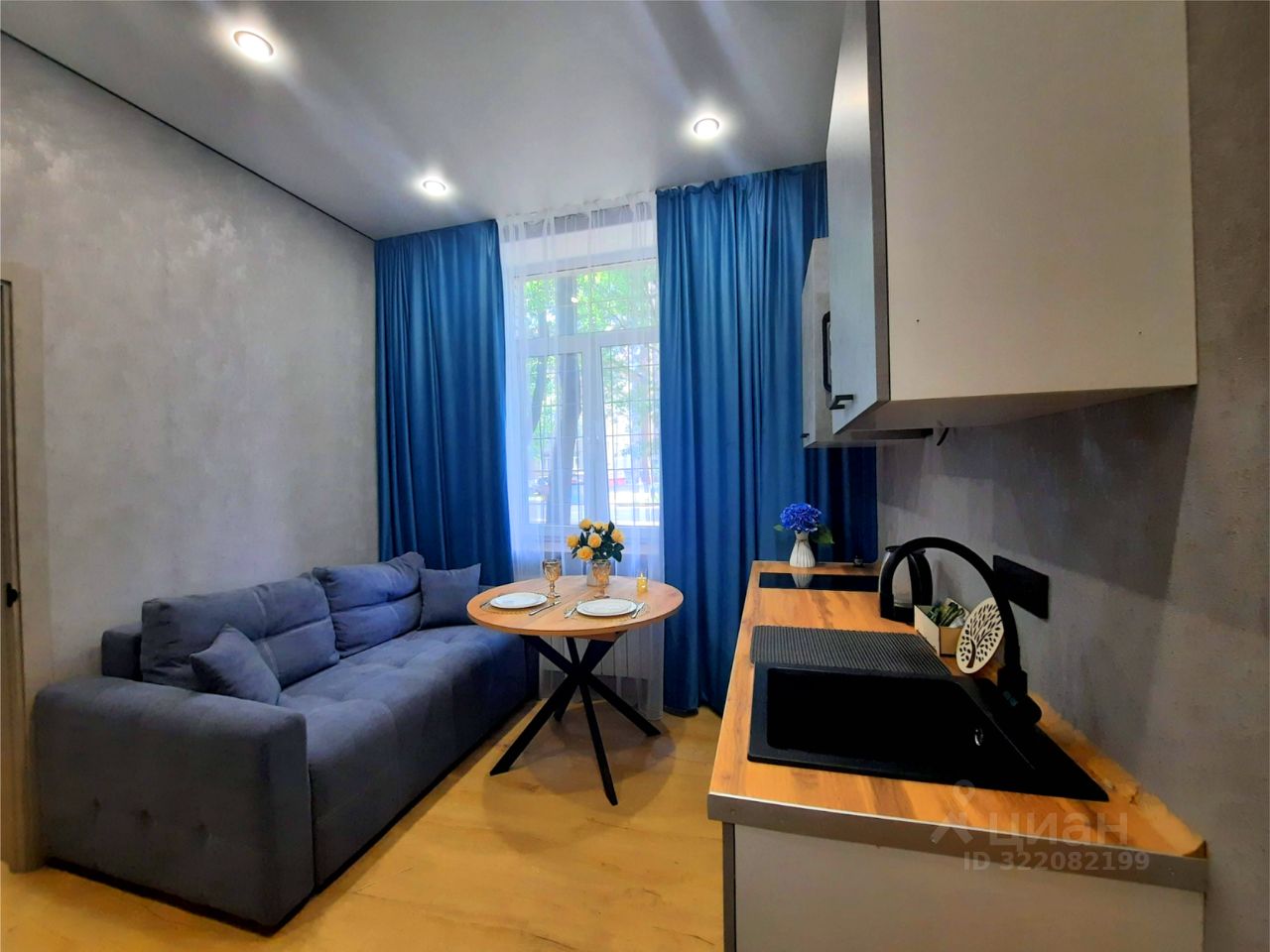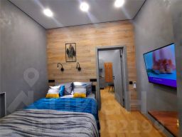 Планировка: гостиная-кухня с двуспальным диваном и отдельная спальня с двуспальной кроватью